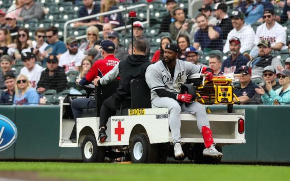Jiménez tuvo que ser sacado del terreno en un carrito en la parte alta del segundo inning tras quejarse de un dolor en la corva derecha luego de ser puesto fuera en la primera base mediante un roletazo flojo en el partido del sábado frente a los Mellizos, que los Medias Blancas perdieron por 9-2 en Target Field.