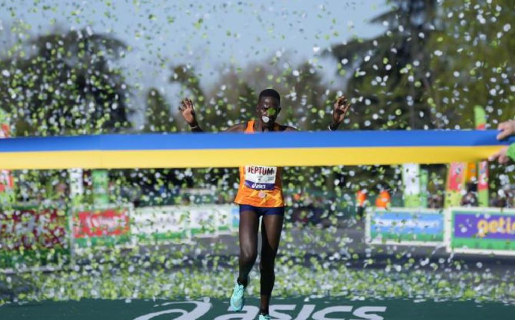 Jeptum completó el recorrido de 42,2 kilómetros (26,2 millas) con un tiempo de 2 horas, 19 minutos y 48 segundos en condiciones frías (2 grados centígrados (36 fahrenheit) al comienzo de la carrera. La ganadora del maratón de Abu Dabi en 2021 se despegó en el kilómetro 28 para conseguir su mejor marca personal y eclipsar el tiempo récord en París, de 2:20:55, fijado por la keniana Purity Rionoripo en 2017.