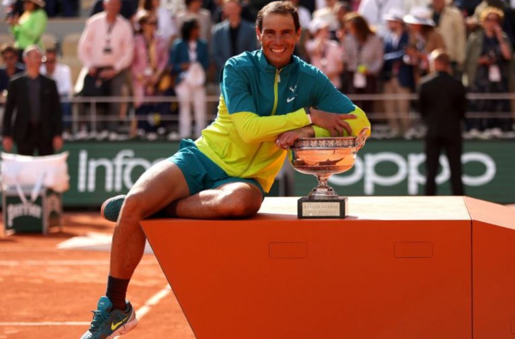 El tenista español Rafael Nadal de 36 años ganó este domingo su título 14 de Roland Garros, luego de llevarse la final ante el noruego Casper Ruud en tres sets seguidos.