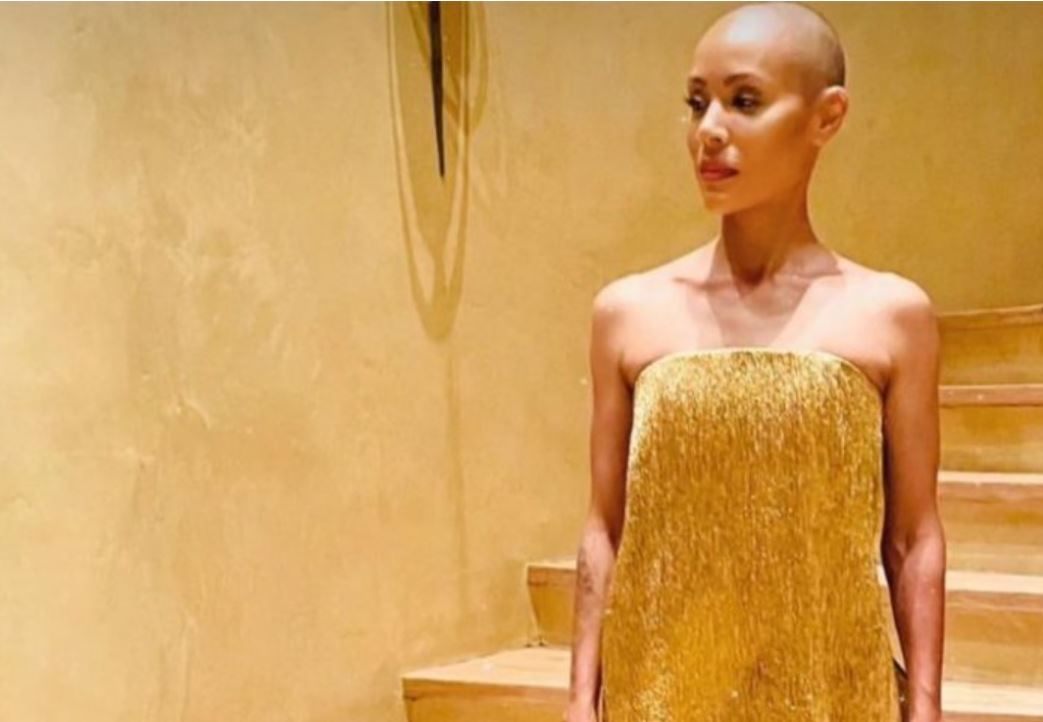 Jada Pinkett Smith, lució un vestido dorado durante su primera aparición pública después de que su esposo el actor Will Smith le diera una bofetada al comediante Chris Rock en la edición número 94 de los Premios Oscar.