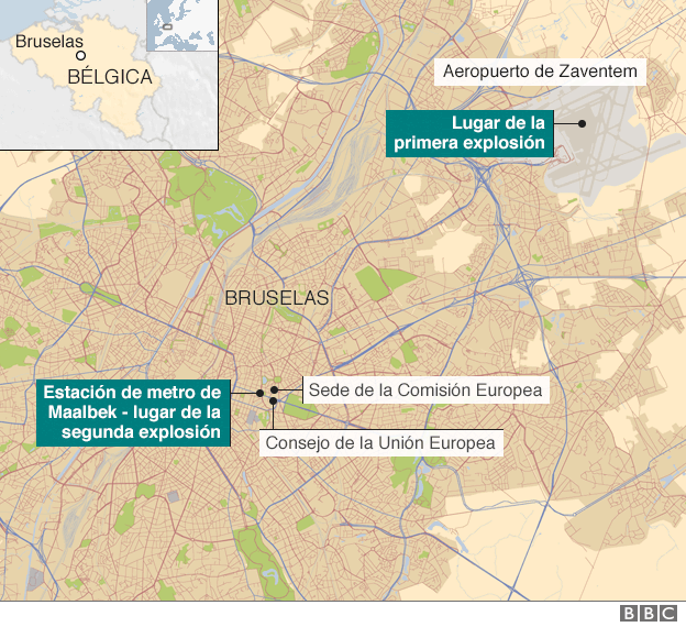 Pero de acuerdo a los medios belgas murieron al menos 13 personas y 35 más resultaron heridas en la sala de embarque del aeropuerto, aunque esa información no ha sido confirmada aún por la BBC.