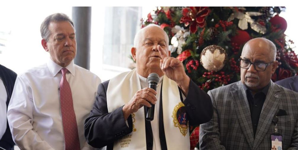 La bendición del acto de apertura de la Navidad y encendido del arbolito estuvo a cargo del padre Ángel Soto, quien expuso que la navidad recuerda el nacimiento de Jesús, simboliza la paz, el amor y la unión de las familias.