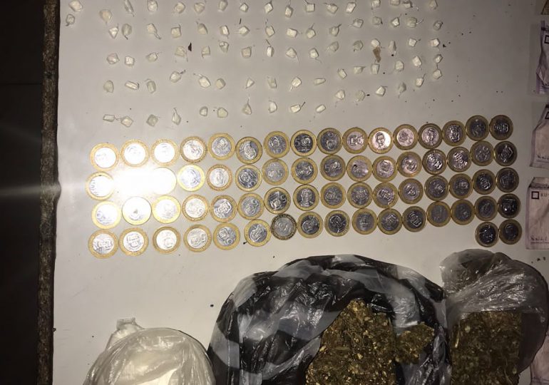 Uno de los detenidos es Yunior paulino Adames, de 29 años, a quien se le ocuparon una funda con dos porciones de presunta marihuana, una de un polvo blanco que se presume es cocaína, y 165 de un material rocoso presumiblemente crack.